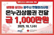 광장일보 주재영 기자 | 파주시는 지난 1일 대한적십자사 서울중앙혈액원에 1천만 원 상당의 헌혈장려지원금 상품권을 전달했다. 시는 안정적인 혈액 공급 기반을 마련하고 지역사회 내 헌혈 참여문화를 확산하기 위해 지난달 헌혈추진협의회를 구성 회의를 개최했으며, 회의 결과에 따라 관내 헌혈자 대상 인당 1만 원 상당의 온누리상품권을 지급할 예정이다. 특히 파주시는 말라리아 헌혈 제한 지역으로, 관내 헌혈의집이 없어 헌혈버스를 통해서만 헌혈이 가능하고 동계기간인 11월~3월에 한해 전혈헌혈이 허용되는 등 여러 제약이 있다. 이러한 어려운 여건 속에서도 시민들의 헌혈 참여를 확대하기 위해, 국내 말라리아 헌혈 제한 지역 중 최초로 헌혈장려금을 지원하게 됐다. 이한상 파주보건소장은 “헌혈장려지원금 지급이 혈액 수급 안정화와 헌혈 참여문화 확산에 기여하는 계기가 되길 기대한다”라고 밝혔다.