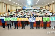 광장일보 주재영 기자 | 광주광역시는 4일 국립순천대학교 파루홀에서 ‘광주‧전남 통합 순천시 상생토크’를 열고, 전남광주통합특별시 출범에 따른 순천 등 전남 동부권 산업발전 방안을 지역민들과 공유했다. 이날 행사는 통합특별법의 국회 통과 이후 처음 열린 상생토크이자, 전남 시군을 순회하며 진행한 일곱 번째 상생토크다. 순천 상생토크에는 강기정 광주시장과 순천지역 기업인, 광주‧전남 기업 관계자 등 200여 명이 참석했다. 강기정 광주시장은 광주전남 통합 추진 경과와 배경을 설명하며 ▲반도체산업 특화단지 지정·지원 ▲이차전지산업 육성 ▲문화·관광 인프라 구축 지원 등 특별법 내용을 전남 동부권 산업과 연계할 청사진을 발표했다. 전남 동부권은 국가기간산업의 수명주기 도래에 따른 산업 침체와 인구 감소를 겪고 있다. 경쟁력 확보를 위해서는 반도체·이차전지 등 신산업을 육성해 기존 석유화학·제철 중심의 산업구조를 다각화할 필요성이 제기된다. 강 시장은 통합특별시 출범 이후 전남 동부권 발전전략으로 ▲광주권-동부권 연계 반도체 메가벨트 조성 ▲AI·반도체 인재양성 사다리 확대 ▲이차