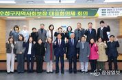 광장일보 주재영 기자 | 대구 수성구는 지난달 27일 구청 대강당에서 지역 사회보장 증진과 복지서비스 제공을 위한 민관협력기구인 수성구 지역사회보장협의체(대표) 회의를 개최했다. 이날 대표협의체 위원 27명이 참석해 ▲2026년 운영 계획 보고 ▲동(洞) 지역사회보장협의체 특화사업 심의 ▲제5기 지역사회보장 계획 2025 연차별 시행 결과 심의 ▲제6기 지역사회보장계획 수립 안내 등 주요 안건을 논의했다. 수성구 지역사회보장협의체는 2023년 제10회 ‘희망수성 복지한마당’ 개최 이후, 지난해에는 정책 개발 중심의 ‘희망수성 복지아카데미’로 운영 방향을 조정했다. 다만 주민 참여와 현장 중심의 복지 정보를 제공받을 수 있는 ‘화합과 소통의 장’에 대한 요구가 지속됨에 따라, 올해 10월 24일 수성못 상화동산에서 제11회 ‘희망수성 복지한마당’을 개최할 예정이다. 또한 ‘우리 마을은 우리가 지킨다’는 방향 아래 위기가구 발굴과 지역 현안 해결을 위한 마을건강복지계획을 확대 추진한다. 주민이 주체가 되어 지역 문제를 논의하고 해결 방안을 모색하는 참여형 복지 체계를 강화한다는 방침이다.