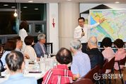 광장일보 주재영 기자 | 연수구는 지난 16일 연수서해그랑블1단지아파트에서 ‘찾아가는 아파트 주민 소통 간담회’를 개최했다. ‘찾아가는 아파트 주민 소통 간담회’는 구청장과 입주민이 직접 만나 주요 현안, 생활 불편 문제 등 다양한 의견을 나누며 구정 방향을 공유하는 소통 프로그램으로, 주민 제안을 중심으로 행정이 응답하는 방식으로 진행한다. 이번 간담회는 김완수 입주자대표회장, 임원진과 동대표, 입주민 등이 참석해 주민들이 실생활에서 겪는 불편과 지역 현안에 대해 자유롭게 의견을 나누고, 행정과 함께 해결 방안을 모색하는 실질적인 소통의 장으로 마련됐다. 주요 건의 사항으로는 ▲인근 지역 완충녹지 조경 개선, ▲후문 교차로 교통 체계 개편, ▲단지 내 도서관 도서 확충 지원, ▲봉재산 등산로 개설 요청 등 실생활과 직결된 내용이 다양하게 건의됐다. 구는 즉시 답변 가능한 사항에 대해서는 해결책을 제시하고, 부서별 검토와 현장 확인이 필요한 사항은 차례대로 조치할 예정이다. 이재호 연수구청장은 “주민의 목소리를 직접 듣고, 함께 해법을 고민하는 뜻깊은 시간이었다.”라며 “앞으로도 구민이