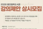 광장일보 이현나 기자 | 원주시 중천철학도서관은 시민의 다양한 요구에 부응하기 위해 2026년 독서 문화 프로그램 제안을 상시로 접수한다. 제안 분야는 중천철학도서관에서 진행할 수 있는 인문학 관련 독서 문화 프로그램이다. 강의 제안을 희망하는 시민 또는 강사는 도서관 홈페이지에 게시된 공지사항을 참고해 이메일로 서류를 제출하면 된다. 제안 반영 결과는 도서관 내부 검토 후 선정 프로그램에 한해 개별 통보될 예정이다. 이훈주 도서관장은 “시민의 욕구를 충족하는 참신한 신규 프로그램이 발굴되길 기대한다”라며, “역량 있는 강사와 시민 여러분의 적극적인 지원을 기다린다”라고 말했다.