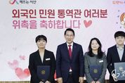 광장일보 나학천 기자 | 충남 서산시가 관내 외국인의 민원 편의를 높이기 위해 외국어 민원 통역관을 위촉했다고 밝혔다. 시는 13일 시청 시장실에서 이완섭 서산시장, 외국어 민원 통역관 3명이 참석한 가운데 위촉식을 개최했다. 외국어 민원 통역관은 시 직원 중 영어·일본어·중국어에 능통한 직원 3명으로 구성됐다. 이들은 종합민원실을 방문한 외국인이 소통으로 인해 민원 처리에 어려움을 겪는 경우, 통화를 통한 통역을 지원한다. 시는 통역 지원을 통해 외국인의 민원 처리 접근성이 향상될 것으로 전망했다. 이완섭 서산시장은 “종합민원실에 방문하는 관내 외국인이 신속하고 편리하게 민원을 처리할 수 있도록 최선을 다해달라”라고 말했다. 한편, 서산시 관내 외국인 인구는 올해 3월 말 기준 6,200명이다.