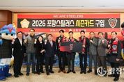 광장일보 주재영 기자 | 포항시의회가‘2026 포항스틸러스 시즌카드’를 구입하며 올 시즌 포항스틸러스의 선전을 기원했다. 시의회는 23일 오전 의장실에서 김일만 의장을 비롯한 이재진 부의장, 상임·특별위원장과 포항스틸러스 김상락 사장, 이종하 단장, 박태하 감독 등이 참석한 가운데 ‘2026 포항스틸러스 시즌카드’ 구입행사를 열었다. 이날 행사에서 김 의장은 “항상 포항 시민과 포항시의회는 스틸러스와 함께하고 있다”며, “올 한해도 시민들의 응원을 받아 더욱 크게 성장하는 포항스틸러스가 되길 바란다”고 응원의 말을 전했다. 이에 포항스틸러스 김상락 사장은 “시즌카드 구매에 함께 해주신 모든 분들게 감사드린다”며, “올 시즌도 지역사회의 응원과 기대에 부응할 수 있도록 철저히 준비하겠다”고 화답했다.