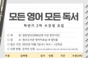 광장일보 주재영 기자 | 천안시 청수도서관은 내일 1일부터 성인 영어 프로그램 ‘모든 영어 모든 독서’ 수강생을 모집한다고 30일 밝혔다. 초급강좌 ‘Into the Storybook’, ‘Words of Wisdom from Picture Books’에서는 영어 그림책을 읽고 영어 단어와 표현을 배울 수 있다. 중급강좌 ‘Talking about Contemporary Issues’에서는 현대 사회의 이슈들을 주제로 영어 토론을 진행할 예정이다. 프로그램은 오는 11월까지 두 달간 운영되며, 신청은 내달 1일 오후 2시부터 도서관 누리집에서 하면 된다. 유정희 청수도서관장은 “도서관에서 제공하는 원어민 영어 수업이 시민들에게 도움이 되길 바란다”고 말했다.