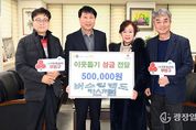 광장일보 주재영 기자 | 부평구는 지난 10일 사회복지법인 주안복지재단으로부터 이웃돕기 성금 2천만원을 전달받았다. 이날 전달식에는 차준택 구청장을 비롯해 주승중 주안복지재단 대표이사, 조상범 인천사회복지공동모금회 회장 등이 참석했다. 기부금은 인천사회복지공동모금회에서 추진하는 ‘희망2026 나눔캠페인’ 부평구 1호 기부금으로 접수돼 지역 내 도움이 필요한 가정과 복지 사각지대 해소를 위해 사용될 예정이다. 인천 남동구에 소재한 주안복지재단은 2015년부터 2023년까지 부평구에 총 2억 3천만원의 명절 이웃사랑 성금을 꾸준히 기탁해왔다. 2023년과 2024년에는 재가돌봄가구 영양죽 지원 사업 후원 및 협약을 진행하는 등 지속적인 지역사회 나눔 활동을 이어오고 있다. 차준택 구청장은 “나눔의 가치 확산이 어느 때보다 중요한 시기에 매년 꾸준하게 도움을 전해주시는 주안복지재단에 진심으로 감사드린다”며 “이번 성금은 도움이 절실한 이웃들에게 큰 힘이 될 것”이라고 말했다. 조상범 인천사회복지공동모금회장은 “올해 ‘희망2026 나눔캠페인’의 부평구 1호 기부를 주안복지재단이 시작해 주셔서