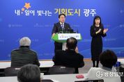 광장일보 주재영 기자 | 강기정 광주광역시장은 11일 시청 브리핑실에서 ‘공공기관 2차 이전 관련 광주·전남 유치전략 기자브리핑’을 열어 광주·전남에 유치해야 할 핵심 공공기관 10곳을 발표했다. 강기정 시장은 이날 “공공기관 2차 이전은 단순히 기관을 옮기는 문제가 아닌, 광주·전남의 가치사슬을 완성할 결정적 승부수가 될 것”이라며 “광주·전남은 함께해야 지속가능 성장이 가능하다는 판단에 따라 통합을 선택했고, 공공기관 이전 문제를 통합 이후 대비할 제도적 장치로 준비하고 있다”고 설명했다. 강 시장은 “광주·전남은 1차 공공기관 이전기관과의 시너지, 지역 산업에 대한 기여 가능성을 기준으로 미래 산업과 관련된 40개 기관, 그리고 10개 핵심 유치 기관을 공동으로 협의해 선정했다”고 밝혔다. 광주·전남이 협의해 선정한 핵심 유치 공공기관은 ▲한국데이터산업진흥원 ▲국토교통과학기술원 ▲한국지역난방공사 ▲한국환경공단 ▲한국에너지기술평가원 ▲농협중앙회 ▲수협중앙회 ▲한국공항공사 등이다. 강 시장은 “한국데이터산업진흥원과 국토교통과학기술원 유치를 통해 ‘AI 중심도시 광주’의 자율주행 실증도시 생태계를