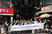 광장일보 주재영 기자 | 포항시의회는 11일 설 명절을 앞두고 전통시장·군부대·사회복지시설을 찾아 지역경제 활성화와 따뜻한 명절 분위기 조성에 나섰다. 김일만 의장을 비롯한 이재진 부의장과 각 상임·특별위원장, 지역구 의원 등은 이날 오전 큰동해시장을 찾아 물가 상승과 장기적인 경기침체 등으로 어려움을 겪고 있는 상인들을 격려하고 명절 제수품을 구매하는 장보기 행사를 펼쳤다. 오후에는 해병대 제1사단·교육훈련단·해군 항공사령부를 차례로 방문해 설 연휴에도 시민의 안전과 평화로운 일상을 지키기 위해 헌신하는 군인들에게 감사의 마음을 전하며 위문금을 전달했다. 이어, 장애인 복지시설인 도움터 기쁨의집을 방문해 위문품을 전달하고 시설 환경과 운영 상황을 살피며 일선에서 고생하는 종사자들을 격려하는 시간을 가졌다. 김일만 의장은 “우리 주변의 모든 이웃들이 즐겁고 따뜻한 설 명절을 보내길 바란다”며, “앞으로도 지속적인 관심과 소통을 통해 온정 넘치고 살기 좋은 지역사회를 만들어 가는데 포항시의회가 앞장 서겠다”고 말했다.