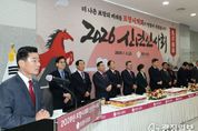 광장일보 주재영 기자 | 포항시의회는 병오년 새해를 맞아 2일 오전 시의회 1층 로비에서 신년인사회를 개최했다. 이날 신년인사회에는 김일만 의장을 비롯한 시의원, 이강덕 시장과 서재원 정무특보 등 시청 간부 공무원, 김정재‧이상휘 국회의원, 경북도의회 이동업·연규식·서석영·손희권·이칠구 도의원, 공원식 포항지역발전협의회장, 진병수·박태식·이상구·문명호 전 시의회 의장, 한명희 의정회장, 이두우·강한국·김경춘·이순동 전 의원을 비롯한 전직 시의원 등 총 100명이 참석했다. 의원들과 내빈들은 새해 덕담을 나누고 의정 철학을 담은 ‘마부정제(馬不停蹄 : 달리는 말은 말굽을 멈추지 않는다)’가 새겨진 시루떡을 자르며, 2026년 포항시의회 의정 운영 방향과 비전을 공유했다. 김일만 의장은 신년사 통해 “지난 한 해 우리는 쉽지 않은 여건 속에서도 K-스틸법 제정과 글로벌 AI 데이터센터 유치 등을 통해 도시의 산업 체질을 바꾸기 위한 기반을 다지며, 포항-영덕 고속도로 개통, 국제학교 유치 등 시민의 삶의 질 향상을 위해서도 지속적인 노력을 기울여 왔다”며, “병오년 새해에도 우리 앞에 직면한 과제를 하나하나 극복해