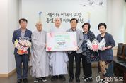 광장일보 이현나 기자 | 심원사에서 추석 명절을 맞아 지난 24일 철원군청을 방문하여 사랑의 이웃돕기 동참의 뜻을 밝히며 500만원 상당의 철원오대쌀(10kg) 200포를 기탁했다. 심원사는 매년 일정 주기로 철원오대쌀로 어려운 이웃을 위하여 불교의 자비의 뜻을 전하고자 노력하고 있다. 심원사 주지 청현스님은 “어려운 이웃에게 큰 힘이 되는 쌀을 기부할 수 있는 계기가 될 수 있어 감사하고, 나눔활동과 따뜻한 마음이 어려운 이웃들에게 큰 기쁨으로 잘 전달됐으면 한다"고 감사의 말을 전했다. 철원군은 심원사로부터 기탁받은 쌀200포를 명절위문기간동안 읍․면사무소를 통하여 저소득층에 전달할 예정이다.