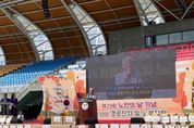 광장일보 주재영 기자 | 영양군은 지난 9월 30일 영양공설운동장에서 농어촌 기본소득 시범지역 선정 기원 범군민 결의대회를 열고, 군민 모두의 간절한 염원을 대내외에 표명했다. 이번 결의대회는 취지문 낭독으로 문을 열어 범군민 퍼포먼스로 이어지며 군민들의 하나 된 염원을 드러냈다. 이날 조동만 군정자문위원회 위원장이 낭독한 취지문은 “비어가는 집, 불 꺼진 상점, 줄어드는 아이들의 웃음소리. 영양은 지금 소멸의 문턱에 서 있습니다”라는 절절한 문구로 시작해, 인구감소와 고령화의 위기를 직시하고 농어촌 기본소득을 통해 지역공동체를 되살리자는 메시지를 담아 군민들의 깊은 공감을 이끌어냈다. 이어 영양청우회 이재동 회장과 영양군애향청년회 성문기 회장이 이끈 구호 제창과 범군민 퍼포먼스가 진행됐다. 군민들은 손피켓을 높이 들고 한목소리로 “영양군이 최적지다”를 외치며 간절한 뜻을 모았다.마지막에는 대형 현수막이 펼쳐지며 중앙정부와 정치권을 향한 군민들의 염원을 상징적으로 드러냈다. 오도창 영양군수는 “오늘 함께한 군민들의 목소리에는 영양의 미래를 지키려는 간절한 마음이 담겨 있었다”며, “이 염원이 반드시