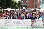광장일보 주리아 기자 | 박강수 마포구청장은 9월 15일 오전 11시, 성산아파트 내 농구장에서 열린 정준호 배우와 함께하는 ‘행복짜장Day’ 행사에 참석했다. 마포복지재단 주관으로 열린 이번 행사는 배우 정준호 씨를 비롯해 (주)도원명가 도원반점, 신비한형제들, 포인트유, 보헤미안컴퍼니, (사)희망을 나누는 사람들 등 다양한 단체가 총 환가액 2천만 원 상당의 현물을 후원하며 마련됐다. 이번 행사에 배우 정준호 씨는 후원자로 참여하는 동시에 주민들에게 직접 짜장면을 나누며 나눔의 의미를 더했다. 후원자들의 정성으로 마련된 600인분의 짜장면과 기념품은 주민들에게 전달되었고, 행사장은 함께 어울려 웃고 이야기하는 따뜻한 분위기로 가득 찼다. 개그맨 이형식 씨는 사회를 맡아 특유의 유쾌한 입담으로 공연과 관객을 하나로 만들며 행사장은 환한 웃음과 뜨거운 박수로 가득했다. 박강수 마포구청장은 “짜장면은 가족, 친구들과 함께했던 추억의 맛이 더해진 음식인 만큼, 오늘의 행복짜장Day도 주민 여러분께 또 하나의 흐뭇한 기억이 되길 바란다”라며, “앞으로도 마포구는 이웃 간 행복을 나누는 실뿌리