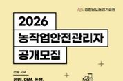 광장일보 주재영 기자 | 충남도 농업기술원은 농업 현장의 재해 예방과 안전관리 강화를 위해 오는 12월 19일까지 ‘농작업안전관리자’를 공개 모집한다. 이번 모집은 2026년 사업 추진을 위한 것으로, 천안·아산·논산·금산·부여·태안 등 6개 시군농업기술센터와 협력해 근무할 전문안전인력 12명(시군당 2명)을 선발할 예정이다. ‘농작업안전관리자’는 농업 분야의 ‘중대재해 처벌 등에 관한 법률(중대재해처벌법)’ 이행을 지원하고, 농가의 위험성 평가 및 안전관리 체계를 구축·지도하는 역할을 수행한다. 주요 업무는 △작업장·농로 등 위험요인 사전 점검 및 개선 △농업기계·농자재 등 위험요소 관리 △소음·진동·분진·가스·농약 등 유해 요인 측정 △농작업 재해 예방 지도 및 개인보호구 착용 지도·홍보 등이다. 지원 자격은 △산업안전보건법 관련 안전·보건관리 분야 실무경력 2년 이상 △산업안전보건법상 관리감독자 실무경력 1년 이상 △안전·보건관리 관련 자격증 보유자 △농작업 안전 관련 경험과 역량을 보유한 자 중 하나 이상을 충족하면 지원할 수 있다. 선발은 1차 서류심사와 2차 면접전형(20