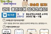 광장일보 주재영 기자 | 화순군은 27일 군민의 일상 속 걷기 실천을 유도하고 걷기 문화 확산을 위해 오는 3월부터 11월까지 모바일 걷기 앱 ‘워크온’을 활용한 군민 걷기 챌린지를 운영한다고 밝혔다. 이번 챌린지는 화순군민이면 누구나 참여할 수 있으며, 참여는 ▲워크온 앱 설치 ▲화순군 공식 커뮤니티 가입 ▲챌린지 화면에서 ‘참여하기’를 선택한 후 스마트폰을 소지하고 걸으면 된다. 다만, 참여 지역이 화순군으로 제한되어 있어 휴대폰 위치 설정을 반드시 활성화한 후 진행해야 한다. 화순군은 9개월간 걷기 챌린지를 운영할 계획이며, 1차 챌린지는 3월 6일부터 25일까지 20일간 진행된다. 목표는 15만 보 달성으로, 목표를 달성한 군민 90명에게는 추첨을 통해 모바일 상품권(5천 원권)을 지급할 예정이다. 박미라 보건소장은 “다양한 걷기 챌린지를 통해 군민들이 일상에서 자연스럽게 걷기 습관을 기를 수 있도록 돕겠다”라며, “걷기 실천을 통해 걷기 좋은 동네, 건강한 화순을 만드는 데 군민 여러분의 많은 참여들 부탁드린다”라고 말했다.