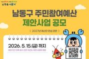 광장일보 주재영 기자 | 인천시 남동구는 주민이 직접 지역에 필요한 사업을 제안하고 예산 편성에 참여할 수 있도록 ‘2026년 주민참여예산 제안사업 공모’를 오는 5월 15일까지 진행한다고 2일 밝혔다. 주민참여예산제도는 예산의 편성부터 집행, 결산까지 전 과정에 주민이 참여하는 제도로, 재정 운영의 투명성과 건전성을 높이고 주민 의견을 구정에 반영하기 위해 운영되고 있다. 참여 대상은 남동구민뿐만 아니라 남동구 소재 직장인과 단체까지 포함되며, 제안은 남동구 누리집을 통한 온라인 신청과 함께 사업 제안 신청서를 작성해 우편·팩스·방문으로도 가능하다. 이번 공모는 일상생활 속 불편 해소와 지역 문제 개선을 위한 공공성 있는 사업을 대상으로 하며, 제안사업은 건당 최대 5억 원 이내에서 신청할 수 있다. 다만 예산이 수반되지 않거나 법령 및 예산편성 기준에 맞지 않는 사업, 특정 단체 지원 또는 특정 제품 홍보를 목적으로 하는 사업, 단순 행사·축제성 사업, 중장기 계획이 필요한 사업 등은 공모 대상에서 제외된다. 접수된 제안사업은 관련 부서의 타당성 검토와 주민참여예산위원회 심의, 주민