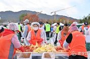 광장일보 주재영 기자 | 충남도 내 자원봉사자들이 지난해에 이어 올해도 김장김치를 나누며 소외된 이웃들에게 따듯한 온정의 손길을 전했다. 도는 18일 도청 남문 다목적광장에서 김태흠 지사와 정광섭 도의회 부의장, 장영기 도 자원봉사센터 이사장, 자원봉사자, 유관기관 등 700여 명이 참석한 가운데 ‘2025 충남도 자원봉사 김장대축제’ 행사를 개최했다. 올해로 2회째를 맞은 이번 행사는 자원봉사 유관기관들로 구성된 온기나눔 범도민 추진본부 주관으로, 소외된 이웃을 위한 나눔문화를 확산하기 위해 마련했다. 참석자들은 ‘함께하는 자원봉사, 함께하는 충청남도’라는 슬로건 아래 이날 하루 동안 김장김치 1만 7000kg(약 6800포기, 1700상자)를 담갔다. 자원봉사자들의 사랑이 담긴 김장김치는 시군 자원봉사센터를 통해 홀몸어르신, 장애인가구, 한부모가정 등 도내 취약계층에 전달될 예정이다. 김태흠 지사는 “15개 시군 자원봉사자 여러분이 모여, 도가 하나로 뭉친 것 같아 뜻깊다”며, “오늘 김장대축제를 통해 따뜻한 정을 나누는 계기가 되고, 어려운 이웃을 챙기는 문화로 더 크게 확산되길