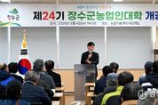 광장일보 주재영 기자 | 장수군은 4일 농업기술센터 대강의실에서 교육생 80여 명이 참석한 가운데 ‘제24기 장수군 농업인대학’ 개강식을 개최하고 본격적인 교육 운영에 들어갔다. 이날 개강식은 최훈식 장수군수의 격려사를 시작으로 교육 일정과 운영 방향 안내, AI 활용 농업 경영 및 마케팅 특강 순으로 진행됐으며 변화하는 농업 환경에 능동적으로 대응하기 위한 교육의 출발을 알렸다. 올해 농업인대학은 △사과반 △두릅반 △신규농업인 기초영농반 등 3개 과정으로 운영되며 3월부터 11월까지 총 33회, 142시간에 걸쳐 체계적인 교육이 진행된다. 군은 각 과정마다 전문 강사진의 지도 아래 이론 교육과 현장 실습을 병행하는 방식으로 운영해 작목별 전문기술 습득과 농업 경영 역량 강화를 동시에 도모할 계획이다. 이를 통해 농업인들이 생산기술뿐만 아니라 경영과 마케팅 능력을 함께 갖춘 전문 농업인으로 성장할 수 있도록 교육의 실효성을 높이고자 한다. 특히 군은 최근 농업 분야에서도 디지털 전환이 가속화되는 흐름을 반영해 AI 기반 농업 경영과 온라인 마케팅 전략을 접목한 특강을 마련해 농업인의 경