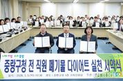 광장일보 주리아 기자 | 중랑구가 생활폐기물 감량과 올바른 분리배출 문화 확산을 위해 ‘폐기물 다이어트’ 실천에 나섰다. 구는 지난 5일 직원들과 함께 ‘폐기물 다이어트 실천 서약식’을 개최했다. 이번 서약식은 올해 1월 1일부터 시행된 수도권 생활폐기물 직매립 금지 정책에 대응하고 주민 참여 기반의 자원순환 문화를 확산하기 위해 마련됐다. 이날 서약식에는 구청장을 비롯한 부서장 등 조직 책임자들이 참여해 폐기물 감량과 올바른 분리배출 실천을 다짐했다. 서약 항목은 ▲음식물 쓰레기 분리배출 ▲비닐·플라스틱 분리배출 ▲종이 분리배출 ▲다회용기 사용 ▲외출 시 장바구니·텀블러 사용 등 일상에서 실천할 수 있는 다섯 가지 행동이다. 중랑구는 이번 서약식을 계기로 주민 참여형 자원순환 정책도 확대한다. 폐기물 감량 TF를 구성하고 분리배출 취약지역에 재활용품 분리수거함을 설치해 환경을 개선할 예정이다. 또한 분리배출 안내 리플릿과 카드뉴스 제작, 학교·어린이집 대상 찾아가는 교육, 투명페트병을 가져오면 종량제봉투로 교환해주는 ‘재활용 정거장’ 운영 등 주민 참여 프로그램을 추진한다. 아울러 중랑구는 서울시