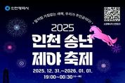 광장일보 주재영 기자 | 인천광역시는 오는 12월 31일, 한 해의 마무리와 새해의 시작을 시민과 함께 기념하기 위해 ‘2025 인천 송년제야 축제’를 인천문화예술회관 야외광장에서 개최한다고 밝혔다. 이번 송년제야 축제는 시민들이 직접 참여하고 체감할 수 있는 연말연시 대표 축제로, 오후 9시부터 자정 이후까지 공연·체험·공식행사가 연이어 진행되며 도심 속 축제 분위기를 한껏 끌어올릴 예정이다. 행사는 시민참여 무대를 시작으로, 인천 지역 예술단체인 구각노리, 루나플로우, 성악가 윤소정의 공연이 이어지며, 초청 가수 정동하, 퍼포맨즈가 무대에 올라 연말의 열기를 더한다. 아울러 행사장 곳곳에는 AI 타로 체험, 소원나무 메시지, 윷놀이 등 시민 누구나 즐길 수 있는 체험 프로그램과 함께, 높이 7m 규모의 대형 미디어아트 포토존이 설치돼 시민들에게 특별한 추억을 선사할 계획이다. 자정 이후에는 불꽃쇼가 펼쳐지며 새해의 시작을 화려하게 장식한다. 특히, 2026년 새해를 알리는 제야의 종 타종식은 시민과 함께하는 상징적 행사로 진행된다. 시민상·문화상 수상자, 국내 유망 체육인, 자원봉사자, 소방관·