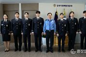 광장일보 주재영 기자 | 중부지방해양경찰청은 9일 오전 청장실에서 경위 공개 채용자 및 신임 순경 전입 신고식을 실시했다. 이번 전입신고 대상자는 총 7명으로, 경위 공채자 4명과 신임 순경 3명이 새롭게 중부해경청 소속으로 임용돼 각자의 근무지에 배치됐다. 경위 공채자 4명은 관서별 치안 수요를 종합적으로 반영해 ▲서해5도특별경비단 1명 ▲인천해양경찰서 1명 ▲태안해양경찰서 2명으로 배치됐다. 특히 경위 공채 인력은 ‘광역 해양경비’와 ‘현장 대민업무’, ‘사무실 업무’를 유기적으로 경험할 수 있도록 순환근무가 가능한 관서를 중심으로 배치해, 다양한 현장 대응 능력을 갖춘 간부로 육성할 계획이다. 아울러, 신임 순경 3명은 실질적인 현장 경험을 통한 전문성 강화를 위해 중부해경청 특공대에 우선 배치됐다. 중부해경청 관계자는 “신규 인력들이 해양 치안 현장에서 빠르게 적응하고 전문성을 갖출 수 있도록 체계적인 교육과 현장 중심의 인력 운영을 지속해 나가겠다”며 “국민의 생명과 안전을 지키는 해양경찰로서 책임과 사명을 다해주길 기대한다”고 말했다.