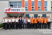 광장일보 주재영 기자 | 무안군통합방위협의회는 추석 명절을 앞두고 10월 2일 지역 방위와 군민 안전을 위해 묵묵히 헌신하고 있는 군부대, 예비군, 소방서를 방문해 위문금을 전달하고 관계자들을 격려했다. 김산 군수는 이날 무안소방서와 제96보병여단 1대대를 차례로 방문해 각종 재난 현장에서 최선을 다해온 소방대원들과, 지역 방위 임무를 충실히 수행하고 있는 장병들의 노고에 깊은 감사를 전했다. 김산 군수는 “군민 모두가 평안하고 따뜻한 명절을 보낼 수 있는 것은 각자의 자리에서 맡은 바 책무를 충실히 이행하고 계신 덕분”이라며 “앞으로도 힘을 모아 안전한 무안군을 만드는 데 최선을 다해 주시길 바란다”고 당부했다. 한편, 무안군통합방위협의회는 매년 명절을 맞아 유관기관을 방문해 위문 활동을 꾸준히 이어오고 있으며, 향후에도 군부대·경찰·소방을 비롯한 안보·재난 대응 기관들과 긴밀히 협력해 통합방위 역량과 군민 안전을 더욱 강화할 계획이다.