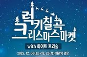 광장일보 주재영 기자 | 경북 칠곡군은 오는 12월 6일부터 왜관역 광장 일원에서‘2025 럭키칠곡 크리스마스 마켓’을 개최한다. 겨울축제가 없는 칠곡에서 연말연시를 따뜻하고 환하게 밝혀줄 겨울철 신규 관광콘텐츠로 기획된 럭키칠곡 크리스마스 마켓은 ‘with 화이트 트리숲’을 부제로 12. 6. / 12. 13. / 12. 20. / 12. 24. / 12. 25. 총 5회에 걸쳐 오후 4시부터 오후 9시까지 운영한다. 지역 소상공인 셀러가 참여하고 크리스마스 디자인으로 예쁘게 꾸며진 마켓은 ▲크리스마스 용품 ▲수공예품 ▲먹거리(겨울간식 등) ▲농․특산품 등 다양한 제품을 선보일 예정이며 미니트리&케익&쿠키 만들기, 소원등 달기, 군밤체험 등 가족 및 연인들에게 특별한 추억을 선사할 체험 콘텐츠도 준비하여 관광객을 맞이할 예정이다. 또한 마켓 운영일에는 버스킹, 마술, 마임 및 지역민이 참여한 성가대 등 다채로운 공연과 인플루언서 ‘산티’의 1분 캐리커쳐 및 칠곡 산타할매 등 이색 이벤트도 현장에서 진행되어 색다른 재미를 더할 예정이다. 특히 행사기간 동안 왜관역 광장에 대형트리를 포함한‘화이트 트