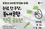 광장일보 이현나 기자 | ‘문장으로 그려낸 당신의 춘천은 과연?’ 춘천시가 올해부터 분기별로 ‘춘천 한 문장, 봄내글판’ 전국 공모전을 개최한다. '춘천 한 문장, 봄내글판'은 춘천시청사 외부 대형 전광판에 시민들이 공감할 수 있는 글귀를 게시해 용기와 희망을 전하는 감성 소통 창구다. 서울 광화문글판에서 영감을 받아 지난해 3월부터 운영되고 있으며 매월 새로운 문안을 선정해 시민들에게 선보이고 있다. 올해 1분기 공모 주제는 ‘내가 사랑하는 춘천’으로 춘천시민뿐 아니라 전 국민 누구나 참여할 수 있다. 형식 제한 없이 40자 이내의 창작 또는 인용 글이면 자유롭게 응모가 가능하다. 접수는 3월 24일까지 온라인(구글폼)과 우편을 통해 진행된다. 공모전 공고와 접수 링크는 춘천시 대표 홈페이지와 인스타그램 또는 페이스북 공식 SNS 채널에서 확인할 수 있다. 선정은 문예 관련 전문가·작가·언론인 등 5명으로 구성된 문안심사위원회가 맡는다. 지역성·심미성·전달성·참신성·대중성 등을 기준으로 심사해 최우수 1작, 우수 1작, 장려 2작, 입선 3작 등 총 7작을 선정한다. 시상금은 춘천사랑상품권으로 최우수 100