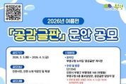 광장일보 주재영 기자 | 부평구가 3월 3일부터 4월 3일까지 한 달간 ‘2026년 여름편 공감글판’ 문안을 공모한다. 공모 내용은 청량한 여름 계절과 잘 어울리며, 희망과 공감을 나눌 수 있는 ‘30자 이내의 창작 글귀’다. 인천 시민이거나 인천 소재 직장인, 학생이라면 누구나 참여할 수 있다. 공감글판 문안을 제출하려는 주민은 부평구청 누리집 ‘공감글판’ 게시판에서 응모하거나 구청 홍보담당관으로 우편 발송, 또는 방문 제출하면 된다. 1인당 3편까지 제출할 수 있다. 구는 접수된 문안을 대상으로 공감글판선정단의 심사를 통해 총 5편의 당선작을 선정할 예정이다. 당선자에게는 최우수(1명) 30만 원, 우수(2명) 각 20만 원, 장려(2명) 각 10만 원 상당의 e음 카드 또는 온누리상품권을 지급한다. 지난 봄편 공감글판 당선작에는 최우수상 조인숙 씨의 ‘봄이라는 건 / 연두빛 어린 새싹이 / 기세좋게 기지개를 켜는 거야’를 비롯해 우수작으로 최동호 씨의 ‘네가 보고 싶어 / 이 봄 / 꽃들이 피어나네’와 안화균씨의 ‘봄바람 숲을 흔들어 / 꽃향기 피우니, / 마음도 춤추는 봄이다’ 등이 뽑혔다.