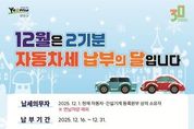 광장일보 주재영 기자 | 연수구는 자동차 등 약 12만 4천 대를 대상으로 2025년 12월 정기분 자동차세 184억 원을 부과했다. 이번에 부과된 자동차세는 12월 1일 현재 연수구에 등록된 자동차, 125cc 초과 이륜차, 건설기계의 등록원부상 소유자에게 부과되며, 연간 자동차세를 한꺼번에 미리 납부(1·3·6·9월)한 차량은 과세 대상에서 제외된다. 납부 기한은 이달 31일까지이며, 전국 금융기관의 현금자동입출금기, 금융결제원, 위택스, 자동응답시스템, 앱 등을 통해 계좌이체나 신용카드로 낼 수 있다. 자동차세 관련 자세한 사항은 연수구 세무과 자동차세팀으로 문의하면 된다. 연수구 관계자는 “납부 기한이 지나면 3%의 납부지연가산세가 부과되고, 번호판 영치 등 불이익이 발생할 수 있는 만큼 기한 내 납부해 주시기를 바란다.”라고 당부했다.