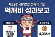 광장일보 주재영 기자 | 800년 역사의 숨결이 살아있는 ‘제29회 전라병영성축제’ 현장에 강진군 공공배달앱 ‘먹깨비’가 지역 상권의 든든한 지원군으로 등판해 축제의 열기를 배달했다. 강진군은 지난 13일부터 19일까지 진행된 병영성축제 기념 먹깨비 할인이벤트를 통해 총 주문 건수 4,336건, 총매출액 1억 1,904만 원을 기록하며 성공적인 성적표를 받아들었다고 밝혔다. 이는 전년 동기 매출액 대비 약 12% 증가한 수치로, 축제가 지역 배달 소비 진작에 실질적인 기여를 한 것으로 분석된다. 이번 이벤트는 축제가 시작되는 주부터 7일 동안 할인 이벤트를 실시하여 평일과 주말에 걸쳐 할인 금액을 달리한 ‘맞춤형 혜택’을 제공했다. 특히 축제 기간 내내 먹깨비를 통한 주문이 이어지며 치킨,피자,족발 등 주요 가맹점을 중심으로 지역 경제에 생기를 불어넣었다. 강진 먹깨비가 꾸준히 사랑받는 이유는 국내 최저 수준인 1.5%의 중개수수료와 가맹점 가입비·광고료 전면 무료라는 ‘착한 정책’ 덕분이다. 이는 대형 배달 플랫폼의 높은 수수료에 지친 소상공인들에게 실질적인 ‘방패’ 역할을 하고 있