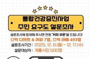 광장일보 주재영 기자 | 계룡시는 시민 건강증진을 위해 ‘2025년 통합건강증진사업 지역주민 설문조사’를 12월 8일부터 17일까지 온라인 방식으로 실시한다고 밝혔다. 이번 설문조사는 시민의 건강수준, 보건사업 이용 경험, 건강증진 분야별 요구도, 개선 의견 등을 수렴하여 2026년 통합건강증진사업에 반영하기 위해 마련됐다. 조사는 QR코드를 활용한 온라인 방식으로 진행되며, 총 500명의 시민이 참여하게 된다. 설문 문항은 ▲개인 건강상태 ▲생활습관 및 건강 위험요인 ▲보건소 건강증진 프로그램 이용 현황 ▲향후 필요 사업 및 우선 추진 분야 등으로 구성됐다. 시는 설문조사를 토대로 만성질환 예방, 신체활동, 영양개선, 아동·여성·노인 대상 특화사업 등을 재정비하고, 지역 특성에 맞는 맞춤형 건강증진 서비스 체계를 강화한다는 방침이다. 또한, 설문 참여율 제고를 위해 참여자 전원에게 커피 쿠폰을 제공하고, 일부 참여자에게는 추가 경품도 지급한다. 설문 결과는 2026년 보건사업 기초자료로 활용될 예정이다. 시 보건소 관계자는 “이번 설문조사는 시민의 의견을 바탕