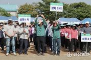 광장일보 주재영 기자 | 당진시 석문면은 당진시 석문면체육회(회장 최장량)에서 지난 26일 ‘제33회 석문면민 체육대회’를 성공적으로 개최했다고 29일 밝혔다. 대회가 열린 현대EP 운동장에는 오성환 당진시장을 비롯한 내빈과 선수, 면민 등 1,000여 명이 참석한 가운데 한궁·여자승부차기·제기차기·고무신 던지기·오재미 등 5개 종목으로 경기를 진행했다. 경기에는 석문면 20개 마을과 재인석문면민회 등 20개 팀이 출전했으며, 종합우승은 통정1리가, 준우승은 삼화2리, 3위는 장고항2리가 차지했다. 최장량 회장은 폐회식에서 “대회의 성공적인 진행에 협조해 주신 모든 분들께 감사드리고, 앞으로도 단합된 체육행사를 위해 최선을 다하겠다”고 말했다. 한편, 이날 오후에는 석문면개발위원회가 주관·주최한 ‘제12회 석문면민 한마음 음악축제’가 열려 면민들과 방문객들에게 즐거운 볼거리를 선사했다. 이날 행사에는 치어리더(렛츠치어)의 식전 공연을 시작으로 '현역가왕2' 우승자인 박서진을 비롯해 정미애, 주미성, 조은아, 문상식, 유난이 등 가수들의 초청공연이 이어졌다. 가수들의 축하공연