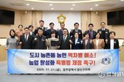 광장일보 주재영 기자 | 광산구의회가 21일 제301회 정례회 제1차 본회의에서 ‘도시 농촌동 역차별 문제 해소 및 농업 활성화 지원에 관한 특별법 제정 건의안’을 채택했다. 광산구의회는 윤혜영 의원(더불어민주당, 신흥동·우산동·월곡1·2동·운남동)이 대표 발의한 건의안을 통해 “대한민국 주요 대도시의 ‘동(洞)’ 지역 농민들은 정부의 농업·농촌 지원 정책에서 구조적 역차별에 직면해 있으며, 이는 농민들의 생존권과 경제적 안정에 심각한 위협이 되고 있다”고 밝혔다. 이어 “과거 광역시 성장 과정에서 인근 농촌이 ‘동’으로 편입됐지만, 정부 정책은 이를 반영하지 못하고 ‘도시’와 ‘농촌’을 이분법적으로 구분하는 시대착오적인 틀에 갇혀 있다”며 “그 결과 농촌동 농민들은 주소지가 ‘동’이라는 이유로 각종 지원 대상에서 제외되어 왔다”고 지적했다. 또한 “사회보장, 세제 혜택, 지역균형발전 등 최소 23개 이상의 중앙정부·지방자치단체 지원 사업에서 배제되고 있다”며 “특히 자치구 전체 인구 증가로 농촌동의 인구 감소가 상쇄되는 통계적 착시 현상으로 인해 지방소멸대응기금이 지원되는 ‘인구감소지역’으로 지정되지 못하는