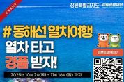광장일보 이현나 기자 | 강원특별자치도와 강원관광재단은 오는 10월 2일부터 11월 16일까지‘KTX 동해선 철도여행 인증 이벤트’를 운영한다고 밝혔다. 추석 연휴와 가을철 성수기에 맞춰 동해선 철도여행 활성화를 위해 마련된 이번 이벤트는 강릉, 동해, 삼척, 부산 부전역 등 동해선 이용객을 대상으로 하며, 기차역과 열차 내 풍경 등의 사진과 동해선 열차 승차권·영수증을 인증하면 참여할 수 있다. 동해선 열차 이용객 누구나 전용 누리집(홈페이지)을 통해 이벤트 참여가 가능하며 추첨을 통해 백화점 상품권, 편의점 및 카페 모바일 상품권 등 다양한 경품이 제공된다. 최성현 강원관광재단 대표이사는 “이번 동해선 열차여행 인증 이벤트를 통해 동해선 철도여행의 매력을 확산시켜, 철도 정거장을 연계한 동해안권 관광을 더욱 활성화 시키겠다”고 말하며“다가오는 추석 명절, 동해선 철도를 이용하는 모든 분들의 여정이 더욱 편안하고 안전하시길 바란다”고 전했다. 자세한 이벤트 참여 방법은 동해선 철도여행 인증 이벤트 전용 누리집(홈페이지) 에서 확인할 수 있다. 한편, 올해 1월 개통한 동해선은 강릉을