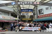 광장일보 이현나 기자 | 김광래 강원특별자치도 경제부지사와 박광용 산업국장을 비롯한 산업국 직원 80여 명은 9월 30일(화) 삼척 중앙시장을 찾아 추석맞이 전통시장 장보기 행사를 진행했다. 이번 행사는 추석 명절을 앞두고 전통시장 소비 촉진과 지역경제 활성화를 도모하기 위해 마련됐으며, 참여자들은 시장 내 점포에서 제수용품과 농·특산물을 구입하고 인근 골목식당에서 오찬을 함께하며 골목상권 살리기에 힘을 보탰다. 아울러 현장에서는 ‘산업은 성장으로, 청렴은 실천으로’라는 구호 아래 청렴 캠페인을 전개하여 상인과 도민들에게 청렴 실천 의지를 알렸다.