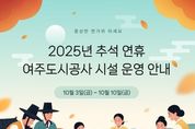 광장일보 주재영 기자 | 여주도시공사는 2025년 추석 명절을 맞아 고향을 찾는 귀성객과 시민들의 편의를 위해 주요 시설 운영시간 조정, 무료개방 등 특별 서비스를 제공한다고 2일 밝혔다. 공사는 우선, 추모객이 집중되는 여주추모공원의 추석기간(5일~7일) 운영 시간을 기존 오전 9시~오후 6시에서 오전 7시~오후 6시로 2시간 조기개장하여 확대운영한다. 이를 통해 명절연휴 기간 원활한 참배가 가능하도록 편의를 도울 예정이다. 또한, 시민과 방문객들의 주차 편의를 위해 공영주차장을 연휴기간(3일~9일) 전면 무료 개방한다. 이를 통해 귀성객과 지역 상권을 찾는 이용객들이 보다 편리하게 주차할 수 있을 것으로 기대된다. 교통약자 이동지원센터의 경우, 특별교통수단은 추석기간(5일~7일) 무료 운행하며, 바우처 택시는 정상 요금으로 운영된다. 공사는 교통약자의 이동권 보장을 위해 차량 안전 점검을 마치고 원활한 운행 서비스를 제공할 계획이다. 종합운동장 등 체육시설과 오학, 점동 파크골프장은 추석기간(5일~7일)에만 휴무이고 그 외 휴일은 정상운영하며, 이 중 파크골프장은 대체공휴일(8일)과 한글날에 무