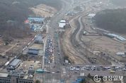 광장일보 주재영 기자 | 의정부시는 스마트교차로 시스템을 활용해 성모병원 앞 사거리 교통체계 개선 효과를 분석한 결과, 차로 확장 이후 교통 흐름이 개선된 것으로 나타났다고 14일 밝혔다. 의정부성모병원 앞 사거리는 하루 평균 약 7만3천 대가 통행하는 주요 교차로로, 서울‧양주‧포천과 의정부 시내 및 민락지구를 연결한다. 출퇴근 시간대 교통량이 집중되면서 정체와 민원이 반복되던 대표적인 혼잡 구간이다. 특히 신평화로(3번국도대체우회도로) 양주 방향에서 자금IC로 내려오는 구간은 대기행렬이 길게 이어져, 광사교차로부터 성모병원 앞 사거리까지 약 3.4km 구간에서 첨두시간(교통량이 가장 많은 시간) 평균 통행시간이 15~20분 정도 소요됐다. 시는 정체 원인으로 지목된 차로 부족 문제를 개선하기 위해 주민 의견을 반영해 보도 폭을 조정하고, 포천→버스터미널 방향 약 500m 구간에 직진차로 1개를 추가하는 방식으로 차로 확장을 완료했다. 교차로 교통체계 개선 효과를 분석한 결과, 차로 확장 이후 해당 방향의 첨두시간(교통량이 가장 많은 시간) 1시간 통행량은 기존 7천174대에서 7천707대로 53
