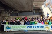 광장일보 나병석 기자 | 화성특례시 만세구 장안면은 3월 17일 남양호 일원에서 장안면 사회단체협의회 주최로 ‘2026년 남양호 환경정화 활동’을 실시했다. 남양호는 지역 주민들의 대표적인 휴식 공간이자 농업지역과 인접한 생활권 수변 지역으로, 계절별 방문객 증가와 영농활동 등으로 지속적인 환경관리가 필요한 곳이다. 이에 장안면은 지역사회가 함께 참여하는 환경정화 활동을 통해 남양호 일원의 수질오염을 예방하고 쾌적한 생활환경을 조성하고자 이번 행사를 마련했다. 이번 활동에는 장안면 19개 사회단체를 비롯해 도의원, 유관기관장, 사회단체협의회 회원 및 지역 주민 등 약 250여 명이 참여했다. 참가자들은 남양호 일원을 구간별로 나눠 이동하며 방치된 생활쓰레기와 영농폐기물을 집중 수거하는 등 수변 환경 정비에 힘을 모았다. 특히 이번 행사는 화성시 '우리동네 새단장' 사업과 연계해 추진돼 주민과 지역사회 기관·단체가 함께하는 공동체 참여형 환경정화 활동으로 진행됐다. 또한 걷기와 쓰레기 수거를 함께하는 생활 실천형 정화활동으로 운영돼, 희망자는 경기도 '기후행동 기회소득' 사업과 연계해 현장 QR코드를