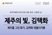 광장일보 나학천 기자 | 제주특별자치도의회는 3월 19일부터 27일까지 도의회 의사당 로비에서 제주 출신 화가 김택화(1940~2006) 화백의 작품을 소개하는 ‘제주의 빛 김택화’ 레플리카전을 개최한다. 이번 행사는 '3월 공감·소통의 날' 행사와 연계해 마련됐으며, 도민 누구나 무료로 관람할 수 있다. 레플리카전은 원작을 정밀하게 복제한 작품을 전시하는 형태로, 김택화 화백의 대표 작품세계를 보다 가까이에서 감상할 수 있도록 기획됐다. 19일 오전 11시에 도의회 도민카페에서 열리는 개막식에는 이승연 김택화미술관장이 김택화 화백의 생애와 예술세계를 소개하고, 작품 이해를 돕기 위한 도슨트 프로그램도 진행할 예정이다. 김택화 화백은 제주에서 태어나 홍익대학교 서양화과를 졸업한 뒤 고향인 제주에서 활동하며 평생 제주 풍경을 화폭에 담은 제주 대표 서양화가다. 특히 한라산 소주 라벨의 원작자로도 널리 알려져 있으며, 제주 자연의 색채와 풍경을 화폭에 담아 제주 미술의 정체성을 보여준 작가로 평가받는다. 또한 제11회 대한민국미술전람회 서양화 부문 특선을 수상했으며, 한국 최고의 추상표현주의 그룹 ‘O
