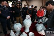 광장일보 주재영 기자 | 1300˚C를 견딘 청자의 빛은 영롱하기만 하다. ‘흙과 불 그리고 사람의 이야기’를 주제로 열리고 있는 제54회 강진청자축제. 지난 22일 강진군 대구면 고려청자박물관 제2호가마에서 화목가마 요출행사가 열린 가운데 옛 전통방식 그대로 소나무 장작을 이용해 48시간 동안 구워낸 청자를 꺼내고 있다.