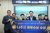 광장일보 주재영 기자 | 나주시가 농업 경쟁력 강화와 매력 있는 농촌 구현에 힘써온 결실로 2025년 전라남도 농촌진흥사업 종합평가에서 최우수상을 받았다. 지난해 7월 농축산식품국과 농업기술센터의 분리 조직개편으로 농업행정과 산하에 재편된 농촌진흥팀은 이번 수상을 통해 1년 반 만에 전문적인 업무 역량을 대외적으로 인정받았다. 26일 나주시에 따르면 이번 평가는 올 한 해 도내 각 시군 농업기술센터에서 추진한 농촌진흥사업 성과를 시상하는 제도다. 평가 항목은 농촌진흥청 지표인 ‘기술보급 기반 확대 노력도’, ‘현장 애로 해소 및 신기술 확산 실적, ’농촌자원 활성화‘, ’농업재해 대응 및 병해충 예방실적‘, ’전문역량 개발 및 청년농업인 육성‘ 등 주요 평가 항목에도 자체 지표를 더해 총 13개 항목으로 구성됐다. 나주시는 특히 농업재해 대응과 병해충 예방 실적, 전문 역량 개발 및 청년 농업인 육성 분야에서 뛰어난 성과를 거두며 전 지표에 걸쳐 고른 실적을 달성했다. 전체 면적의 약 43%가 농림 지대인 나주시는 전국 최대 배 재배 지역이자 도내 벼 재배 규모 3위, 미나리와 고추는 1위를 기록하