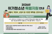 광장일보 주재영 기자 | 동두천시는 2026년 ‘위기청소년 특별지원’과 관련해 사회·경제적으로 어려움을 겪는 관내 위기청소년들에게 다양한 혜택을 제공하기 위한 신청을 3월 30(월)까지 받는다고 밝혔다. 지원 대상자는 9세 이상 24세 이하의 위기청소년(은둔청소년, 저소득 한부모 가족 자녀 등)으로 생활, 건강, 학업, 자립, 상담, 법률 지원 등 다양한 혜택을 받을 수 있다. 신청은 청소년 본인, 보호자, 청소년지도자, 교원, 사회복지사, 청소년 담당 공무원 등이 청소년이 거주하고 있는 행정복지센터에서 할 수 있다. 선정 기준은 소득 기준 중위소득 100% 이하이며, 지자체 ‘청소년복지심의위원회의’ 심의를 통해 적합 대상자 및 지원 금액, 기간 등이 결정된다. 시 관계자는 “모든 위기 청소년들에게 도움이 됐으면 좋겠지만, '국민기초생활 보장법','긴급복지지원법','의료급여법','사회복지사업법' 등에 따라 이미 지원을 받고 있는 경우 동일 내용의 중복 지원은 불가하다”라고 말했다.