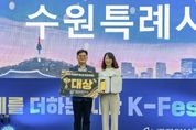 광장일보 박균현 기자 | 수원특례시가 ‘제6회 대한민국 축제 엑스포 베스트 축제 어워드’에서 기초자치단체 부문 대상을 받았다. 시상식은 19일 수원컨벤센센터에서 열렸다. 수원시는 17~19일 수원컨벤션센터에서 열린 제6회 대한민국 축제 엑스포에 참가해 부스를 운영하며 ‘2026-2027 수원 방문의 해’와 수원화성문화제, 정조대왕능행차 공동재현, 수원화성 미디어아트 등 수원시를 대표하는 축제를 방문객들에게 홍보했다. 베스트 축제 어워드 수상 지자체는 홍보 부스 운영계획, 프로그램 참여도, 현장 평가 등을 종합적으로 평가해 선정한다. 수원시는 마케팅, 콘텐츠, 부스 운영, 대중 선호도 등 모든 분야에서 우수한 성과를 인정받아 최고점을 받았다. 시상식에 참석한 선은임 수원시 문화관광체육국장은 “대한민국 축제 엑스포에서 수원의 축제 역량을 인정받고, 대상을 받게 돼 기쁘다”며 “앞으로도 차별화된 콘텐츠로 글로벌 축제 도시로서 위상을 높여 나가겠다”고 밝혔다. 대한민국 축제 엑스포는 전국의 대표 축제들을 만날 수 있는 국내 최대 축제 전문 박람회다.