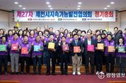 광장일보 이현나 기자 | 제천시지속가능발전협의회(상임회장 이영표)는 지난 19일 제천여성문화센터 1층 대강당에서 위원과 관계자 등 130여 명이 참석한 가운데 제27차 정기총회를 개최했다. 이날 총회에서는 지속가능발전 유공 우수위원 표창과 제천 기후변화교육 강사 위촉식, 제천 지속희망봉사단 창단, 지속가능발전목표(SDGs) 17개 목표 실천 다짐 행사 등이 진행돼 향후 지속가능발전 목표 달성 의지를 다졌다. 특히 새롭게 출범한 ‘제천 지속희망봉사단’은 지역사회 내 지속가능발전 실천 확산의 중심 역할을 수행할 것으로 기대되며, 기후변화교육 강사 위촉을 통해 시민 대상 환경교육 기반도 한층 강화될 전망이다. 협의회는 지난 한 해 동안 기후위기 대응과 시민 참여 확대, 지역 맞춤형 지속가능발전 사업 추진 등 다양한 분야에서 성과를 거두었으며, 올해는 더욱 체계적인 사업 추진과 민관 협력 강화를 통해 지속가능한 지역사회 조성에 속도를 낼 계획이다. 이영표 상임회장은 “이번 정기총회는 성과를 공유하는 동시에 새로운 도약을 준비하는 자리였다”며 “앞으로도 시민과 함께 지속가능한 제천을 만들어가기 위해 다양한
