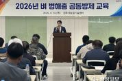 광장일보 주재영 기자 | 진주시는 16일 오후 농업기술센터에서 벼 병해충 피해를 최소화하고 체계적인 공동방제를 추진하기 위해 ‘2026년 벼 병해충 공동방제 교육’을 실시했다고 밝혔다. 이번 교육은 진주시농업기술센터가 본격적인 방제 시기를 앞두고 안전하고 효율적인 공동방제 추진을 위해 마련됐으며, 관내 들녘 별 공동방제 보조 사업자와 항공방제사 등 100여 명이 참석한 가운데 실무 중심의 교육으로 진행됐다, 이날 교육에서는 병해충의 발생 시기별 주요 특징과 효과적인 방제 요령을 비롯해 현장에서 자주 발생하는 민원 사례 등을 중심으로 실질적인 내용을 다뤘다. 또한 농약 사용과 항공방제에 적용되는 관련 법규는 물론 안전관리 지침을 안내하는 등 현장에서 바로 활용할 수 있는 실무 정보를 제공해 호응을 얻었다. 이와 함께 지난해 방제 과정에서 제기된 현장의 애로사항과 개선 사례를 공유하며 참여자들이 경험과 정보를 나누고, 보다 효율적인 방제 방안을 모색하는 시간도 마련됐다. 또한 시는 지난해 가을의 고온과 잦은 비로 볍씨 여뭄이 좋지 않았던 점을 고려해 올해 벼의 안전 육묘를 위한 종자소독과 육묘 관리의