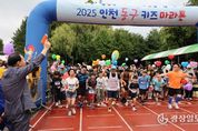 광장일보 주재영 기자 | 인천 동구는 지난 20일‘2025년 인천동구키즈마라톤대회’를 동구구민운동장과 어린이교통공원 일대에서 성황리에 개최됐다고 밝혔다. 동구가 후원하고 ㈜미디어인천신문과 (사)인천키즈마라톤조직위원회에서 주최·주관한 이날 행사에는 김찬진 동구청장과 유옥분 동구의회 의장, 엄홍빈 미디어인천신문 대표이사가 참여했다. 또한 마라톤 참가자와 동반 가족 1천여명이 함께 참가하여 가족 간 유대감을 높이는 시간을 가지며 건강한 하루를 보냈다. 행사는 식전공연을 시작으로 개회식, 마라톤대회, 경품추첨 등 다채로운 프로그램으로 구성됐으며, 행사장 곳곳에 에코백 꾸미기, 컵받침 꾸미기, 도서 대여, 체형 교정, 타투 스티커 체험, 농구 체험, 실종 예방 지문등록 등 다양한 체험 부스가 마련되어 참가자와 가족들에게 풍성한 즐길거리를 제공했다. 행사에 참여한 한 학부모는 “아이들과 함께 달리고 체험도 하며 특별한 하루를 보낼수 있었다”고 말했다. 김찬진 동구청장은“키즈마라톤 대회를 통해 가족들 모두 건강한고 즐거운 추억을 담아가길 바란다”며“동구는 앞으로도 아이들이 건강하게 뛰놀 수 있는 기회를 꾸준히
