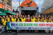 광장일보 주재영 기자 | 여주시는 여주시소상공인지원센터 주관으로 2025년 추석 명절을 앞두고 물가안정과 지역경제 활성화를 위한 '추석 명절 맞이 소상공인 친절 캠페인'을 여주5일 장날인 9월 30일에 실시했다. 이번 행사는 한글시장과 세종시장에서 진행됐으며, 시민들과 상인들로부터 큰 호응을 얻었다. 이날 행사에는 이충우 여주시장, 박두형 여주시의회 의장을 비롯해 여주시 소상공인지원센터, 소상공인연합회, 한글시장 및 세종시장 상인회, 공무원 등 40여 명이 참여했다. 참가자들은 추석 명절 성수품을 구매하며 물가안정을 위한 홍보 활동을 펼치는 한편, 상인들에게 친절한 서비스 제공을 독려하는 캠페인도 함께 진행했다. 여주시 소상공인지원센터 유준희 센터장은 "여주시 전통시장 및 상점가 활성화를 위해 소상공인의 역할이 무엇보다 중요하다"라며, "이번 캠페인을 통해 친절 서비스 문화가 확산되어 지역경제가 활기를 되찾기를 바란다"라고 말했습니다. 이번 캠페인을 계기로 여주시 관내 시장과 상점가의 서비스 개선에 도움이 될 것으로 기대되며, 앞으로도 지속적으로 친절 홍보를 할 계획이다.