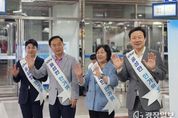 광장일보 주재영 기자 | 성남시의회 더불어민주당협의회는 2일, 성남시종합버스터미널(야탑)을 찾아 고향으로 향하는 귀성객들을 환송하며 따뜻한 인사를 나눴다. 이날 민주당협의회 소속 의원들은 시민들에게 명절 인사를 전하며, 오랜만에 고향을 찾는 귀성객들이 안전하고 편안한 귀성길이 되길 바라는 마음을 함께했다. 민주당협의회는 “민족 최대의 명절 추석을 맞아 시민들의 삶을 가까이에서 살피고 목소리를 듣는 것이야말로 정치의 기본”이라고 강조했다. 특히 “민생 경제가 어려운 시기인 만큼 생활 안정과 지역경제 활성화에 더욱 힘쓰겠다”는 의지를 밝혔다. 이준배 대표의원은 “성남시민 여러분께서 풍요롭고 행복한 한가위를 보내시길 진심으로 기원한다”며, “민생 회복과 지역경제 활성화를 위해 성남시의회 더불어민주당협의회가 앞장서겠다”고 말했다. 이어 “안전한 귀성길과 가족들과 함께하는 따뜻한 명절을 보내시길 바란다”고 덧붙였다.
