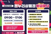 광장일보 주재영 기자 | 충남도는 전통시장 이용 촉진과 국산 신선 농축산물 소비 확대를 위해 다듬달 1일부터 5일까지 ‘온누리상품권 환급행사’를 실시한다고 28일 밝혔다. 농림축산식품부가 주관하는 이번 행사는 행사 참여 전통시장에서 국산 신선 농축산물을 구매한 소비자에게 구매 금액의 최대 30%를 온누리상품권으로 환급하는 방식으로 운영된다. 환급 규모는 구매 금액에 따라 달라진다. 3만 4000원 이상 6만 7000원 미만은 1만 원, 6만 7000원 이상은 2만 원을 환급하며, 1인 1일 최대 2만 원까지 가능하다. 도내 행사 참여 시장은 △천안중앙시장 △공주산성시장 △보령원도심 도시락 상권(보령중앙시장·보령한내시장·보령동부시장·보령현대시장) △온양온천시장 △서산동부전통시장 △논산화지중앙시장 △당진전통시장 △부여중앙시장 △태안서부시장·태안동부시장(연합)이다. 환급은 각 시장 내 환급 부스에서 진행되며, 기본 운영시간은 오전 9시부터 오후 5시까지이나 시장별 사정에 따라 다르므로 농축산물 할인 지원 누리집을 참고하면 된다. 한편 같은 기간 해양수산부 주관 수산물 환급행사도
