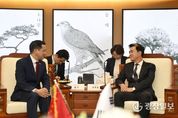 광장일보 주재영 기자 | 김태흠 충남도지사는 6일 도청 접견실에서 다이빙(戴兵) 주한 중국대사와 만나 양 지역 간 교류·협력 확대 방안을 논의했다. 이번 접견은 다이빙 대사 부임 이후 처음으로 이뤄진 공식 방문으로, 1992년 한중 외교관계 수립 이후 축적된 양국 간 교류 성과를 토대로 상호 이해와 신뢰를 재확인하고 안정적인 관계 발전 방향을 모색하는 자리로 마련됐다. 이 자리에서 김 지사는 “중국에는 ‘화합이 번영을 만든다’라는 뜻의 ‘화기생재(和氣生財)’라는 말이 있는데 이 말이 오늘날 한국과 중국에 딱 어울린다”라며 “한중 간 인문 교류가 점차 회복되는 가운데, 지방정부 차원의 실질 협력은 양국 관계를 더 안정적으로 뒷받침할 기반이 될 것”이라고 강조했다. 이어 김 지사는 “도는 1993년 허베이성을 시작으로 14개 성(시)정부와 투자통상은 물론, 문화·청소년·환경 등 다방면에서 협력의 역사를 만들어왔다”라면서 “양국 지방정부와 기업들 사이의 협력 강화를 위해 정책적인 노력과 제도적인 뒷받침을 부탁드린다”라고 요청했다. 또 김 지사는 ‘2026년 태안국제원예치유박람회’를 비롯한 도내 주요
