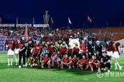 광장일보 주재영 기자 | 김천상무가 포항전 6연승을 달렸다. 김천상무프로축구단이 9월 27일 토요일 16시 30분, 김천종합운동장에서 열린 ’하나은행 K리그1 2025‘ 31R 홈경기에서 포항스틸러스에 2대 0으로 승리했다. 이날 승리로 김천상무는 리그 2연승과 함께 포항전 6연승, 2년 연속 파이널 A그룹 진출이라는 기록을 세웠다. 김천상무는 4-4-2 포메이션을 가동했다. 골키퍼 장갑은 이주현이 꼈다. 백포는 박철우, 박찬용, 김강산, 이정택이 구성했다. 중원에는 맹성웅과 이승원이 선발로 나섰고, 양쪽 날개에는 김승섭과 이동준이 선발 출전했다. 최전방에는 나란히 두 자릿수 득점을 달리는 박상혁과 이동경이 포진했다. 한국전력기술 브랜드 데이로 시작한 전반, 상대 퇴장으로 수적 우위! 김천상무는 한국전력기술 브랜드 데이를 맞아 신선하고 다양한 홈경기 이벤트로 홈팬을 맞이했다. 이어 경기 시작 전 플레이어 에스코트, 매치볼 딜리버리, 김승섭의 K리그 통산 200경기 출전 기념 시상과 시축으로 승리의 기운을 불어넣었다. &nbs